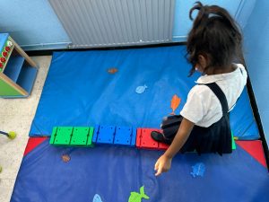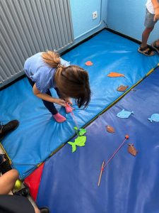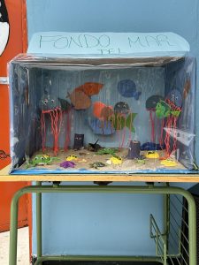 Para que nuestro alumnado haga un repaso de su verano, hemos trabajado diferentes actividades relacionadas con pescar peces, pintar medusas, poner ojos a los peces y otros animales marinos, crear cangrejos y pulpos, hacer equilibrio para no caer al mar… Y finalmente ¡crear nuestro acuario! Todas las actividades han resultado muy divertidas y motivadoras para el alumnado, además han aprendido nuevo vocabulario.