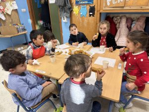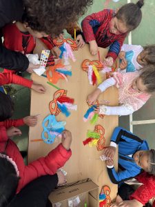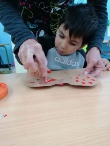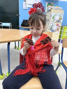 En el día mundial del flamenco, el alumnado del aula celeste han creado unas castañuelas para acompañar el ritmo de la música. ¡Olé!
