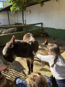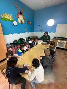 No todo va a ser trabajar en el centro, el alumnado también puede aprender fuera de este y para ello hacemos una excursión a una granja escuela, donde todo el alumnado aprende el sonido y nombre de varios animales, alimentación, aprenden a hacer pan e incluso interiorizan cómo plantar y cuidar una maceta con una semilla.