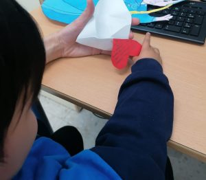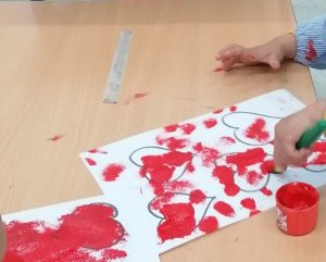 Todos y todas los/as alumnos/as han escrito sus cartas de San Valentín y las han introducido en el buzon elaborado para ello. El alumnado del aula ha enviado corazones pintados por ellos y han recibido su regalo de San Valentín.