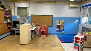 Este año ¡ESTRENAMOS AULA! Estamos muy contentos, tanto el alumnado como el profesorado, porque tenemos una clase grande y con suficiente espacio para no chocarnos los unos con los otros. Aquí os dejo una fotito para que apreciéis un poco lo maravillosa que es nuestra clase. Al fondo a la izquierda tenemos una zona de juego y a la derecha estamos creando, poco a poco, un rincón sensorial de relajación.