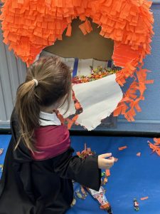 Aquí están las flores que antes vimos y muchas más decoraciones que se han llevado a cabo para poder comprender la temática y decorar nuestro colegio.