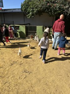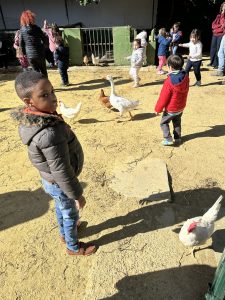 No todo va a ser trabajar en el centro, el alumnado también puede aprender fuera de este y para ello hacemos una excursión a una granja escuela, donde todo el alumnado aprende el sonido y nombre de varios animales, alimentación, aprenden a hacer pan e incluso interiorizan cómo plantar y cuidar una maceta con una semilla.