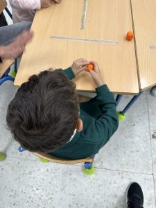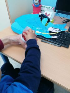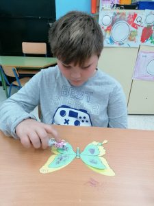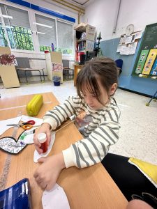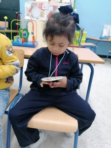 En el día mundial del flamenco, el alumnado del aula celeste han creado unas castañuelas para acompañar el ritmo de la música. ¡Olé!