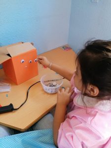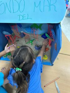 Para que nuestro alumnado haga un repaso de su verano, hemos trabajado diferentes actividades relacionadas con pescar peces, pintar medusas, poner ojos a los peces y otros animales marinos, crear cangrejos y pulpos, hacer equilibrio para no caer al mar… Y finalmente ¡crear nuestro acuario! Todas las actividades han resultado muy divertidas y motivadoras para el alumnado, además han aprendido nuevo vocabulario.