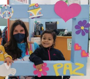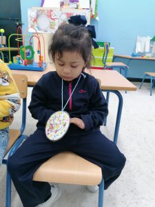 Para ello el alumnado ha elaborado unas medallas que se han colgado; y todos y todas han coloreado, plasmando sus manos, diversas imágenes que representan la paz, en el caso de la etapa de Educación Infantil, que es a la que pertenece el alumnado del aula, ha sido la paloma de la paz.