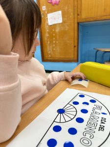 Nuestra clase se ha juntado con infantil para desarrollar un estupendo taller relacionado con esta temática. En la clase hemos aprendido a tocar las palmas, zapatear, pasos de la sevillana, etc. Además, hemos hecho un abanico con gomets y con colores.