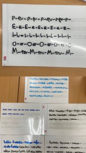 Trabajamos la caligrafía desde pequeños con pizarras de pauta Montessori y cuadernos adaptados, reforzando la escritura con método y precisión.