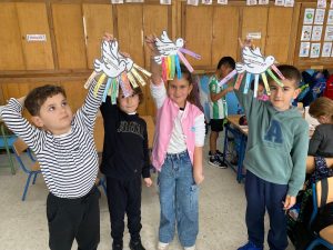 En clase hemos creado un abecedario de la paz a través de las respuestas del rosco de pasapalabra. Luego hemos creado la clásica manualidad de la paloma, pero esta vez algo versionada.