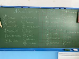 En clase hemos creado un abecedario de la paz a través de las respuestas del rosco de pasapalabra. Luego hemos creado la clásica manualidad de la paloma, pero esta vez algo versionada.